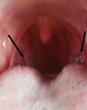 Odpověď zdravotníka na dotaz: "Černobílé skvrny" v krku